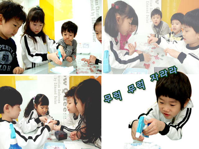 “우와 이거 봐~ 강낭콩 싹이 났어.”