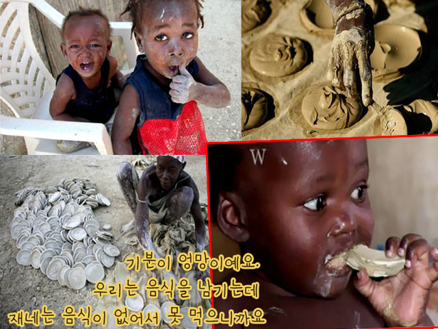 “진흙 쿠키 먹고 병이 걸렸대요. 저러다가 죽겠다.”