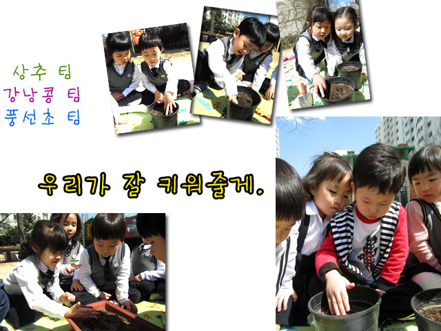 먼저 심을 씨앗을 충분히 관찰하고, 각자의 역할을 나누어 가진 후 씨앗심기 그룹 활동에 참여 합니다.<강낭콩 팀>