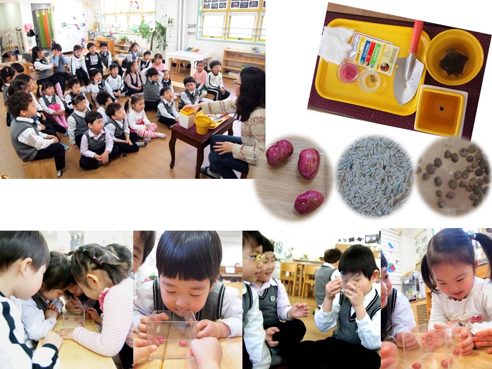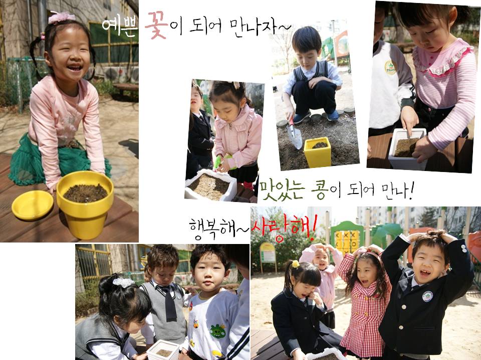 물고기를 <물고기 친구>라고 부르며, 교실에 핀 꽃을 신기해하고, 움직이는 물고기를 위해 어항 앞에서 조용히 이야기 할 줄 알며 새싹반 식물과 물고기에는 모두 똑같이 “우리와 똑같이 생명이 있어요”라고 말하는 새싹반 어린이들. 정말 대견스럽지 않나요?^^ 물고기를 친구로 맞이하며 환영하고 함께 살아가는 새싹반 어린이들의 이야기가 기대되어집니다^^★우리 반 식물 심기★