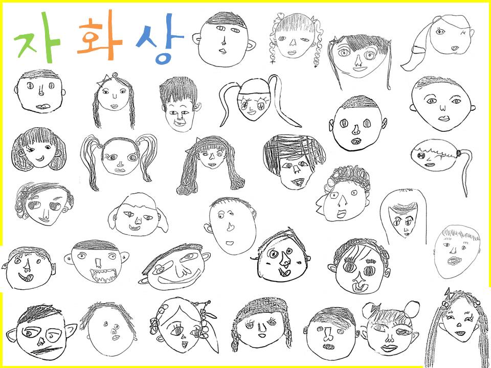 그림과 매체로 표현한 내 얼굴을 보면서 흐뭇해하는 친구들..