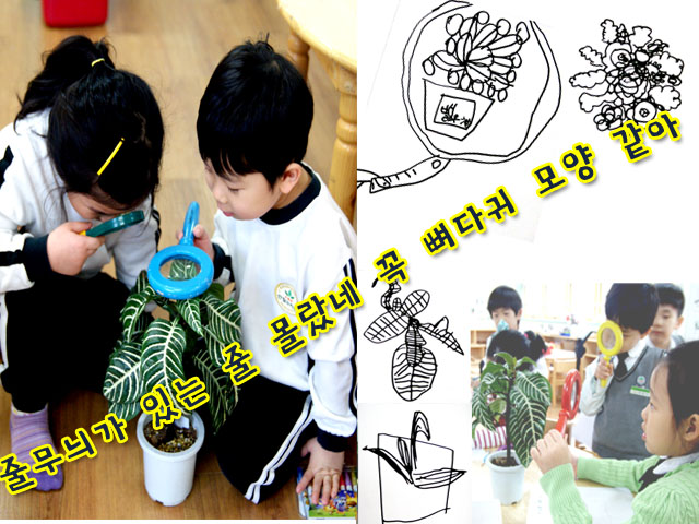 돋보기를 들고 관찰해보니 그냥 지나칠 때는 발견 할 수 없었던 새로운 색과 모양, 특이한 점들을 발견할 수 있습니다.