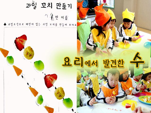 이슬반 첫 요리활동 ‘과일 꼬치’ 는 그 수학적 개념을 즐겁게 경험 할 수 있는 활동입니다.