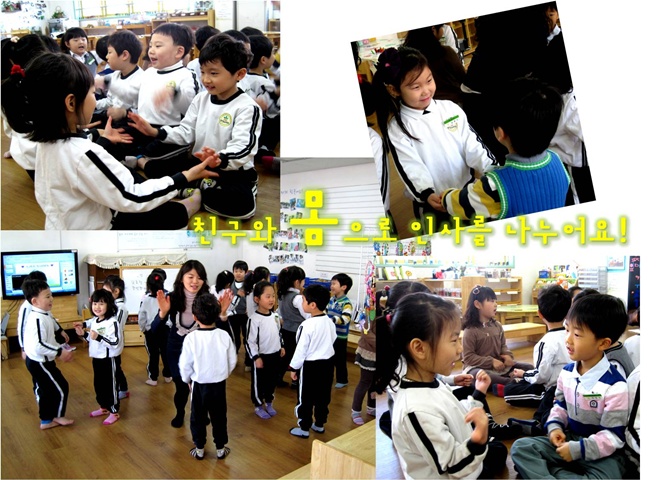 처음으로 한 자리에 모인 햇살반 친구들. 서로 친해지는 시간을 가지기 위해 둥글게 원을 만들어 율동을 하며, 인사를 나누어 봅니다. “안녕하세요. 누구시더라. 반갑습니다.” 햇살반 모든 친구들과 인사를 나누며 햇살반 어린이들은 하나가 되는 것을 느낍니다. 또, 음악에 맞추어 자유롭게 걸어다니다 친구를 만나면 손으로, 발로, 엉덩이로 박수를 치고 “만나서 반가워.”, “사이좋게 지내자.”하며 몸으로 인사를 나눕니다. 처음에 조금 서먹했던 친구들도 이제 서로를 향해 환한 미소를 짓습니다. 첫 만남의 설레임처럼 햇살반에서 하나, 둘 즐거운 추억을 만들어 가려 합니다. 앞으로 햇살반에서 펼쳐질 행복한 이야기에 귀 기울여 주세요!<인형극-꼬리를 돌려 주세요>