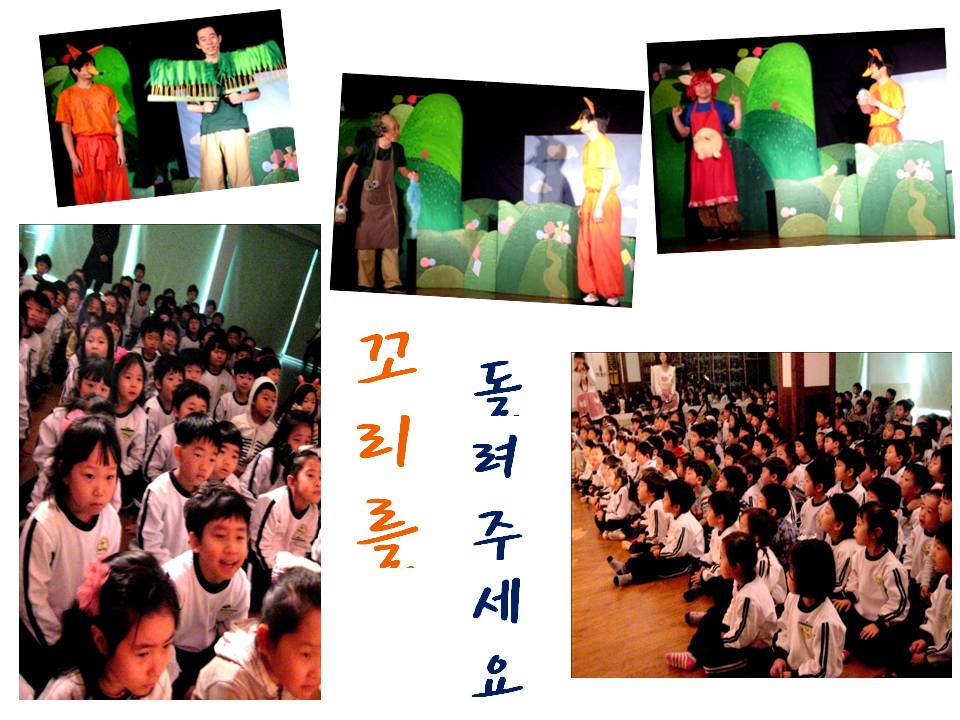 친구들의 입학을 축하하며 재미있는 연극을 준비하였습니다. 친구들, 동생들과 함께 멋지게 앉아 인형극 볼 준비를 합니다. 멋진 손 무릎! 두 눈은 반짝! 입은 꼭꼭~ 두 귀는 쫑긋~ 어떤 내용의 인형극이 기다리고 있을까요? 불이 하나 둘 꺼지고 우스꽝스러운 분장을 한 주인공들이 나오면서 인형극이 시작되었습니다. ‘꼬리를 돌려주세요 ’라는 재미있는 인형극은 자신이 한 일은 스스로 책임져야 한다는 교훈을 담고 있었습니다. “여우 꼬리 빨리 찾아 주세요” “우리가 꼬리 찾도록 도와주고 싶어요.” 소리도 지르고 하하! 호호! 깔깔! 웃으며 인형극 속으로 점점 빠져들며 햇살반 친구들은 즐거운 시간을 보냈답니다.<함께 행복해지는 길>