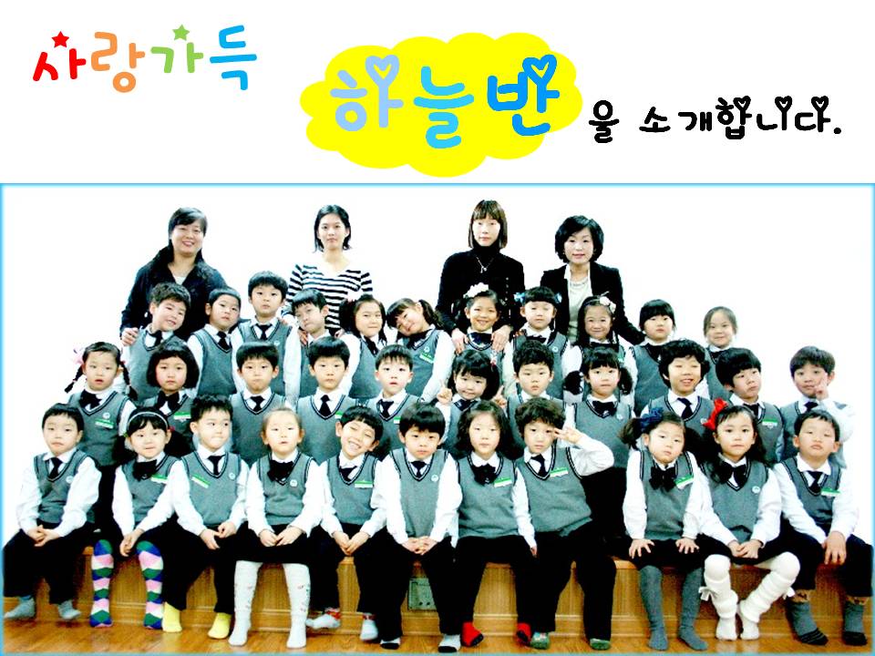 『꿈이 자라고 생각이 자라는 사랑 가득한 하늘반』라는 하늘반의 반훈을 가지고 서로가 서로에게 힘이 되고 기쁨이 될 수 있는 너와 내가 아닌 우리로 자랄 수 있도록 따뜻한 사랑과 믿음으로 배려하고 아끼는 하늘반이 되겠습니다.