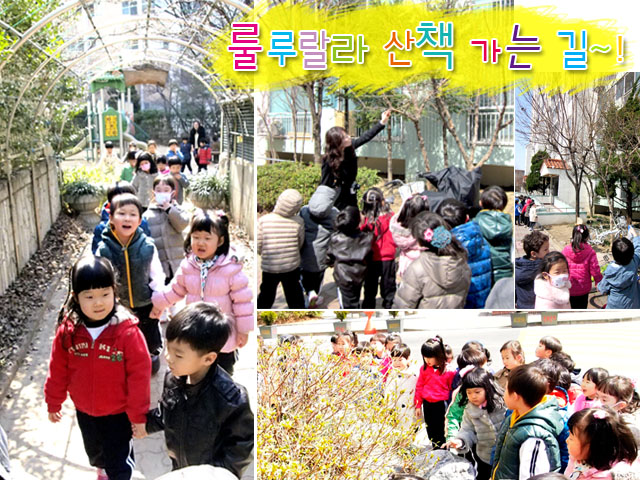 새싹반 어린이들과 함께 처음으로 나간 산책. 다행히 봄을 시샘하던 추위는 잠시 누그러들고 따뜻한 봄 햇살이 들어 기분 좋은 산책길이 되었습니다.