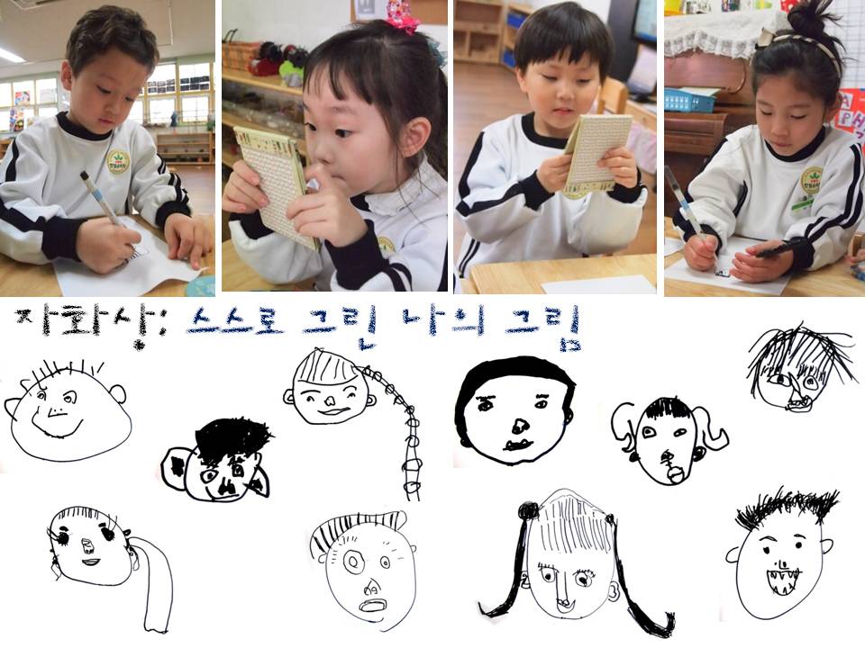 “생명의 씨앗이다!” “은행같이 생겼는데.. 은행나무에 달린 은행 열매 말이야.” “저기 안에서 열매가 나올 것 같아. 사과처럼 커다란 거!” “어떻게 변할까?” 어린이들은 나무 끝자락에 달린 봄의 신호를 보며 궁금증을 가지기 시작하였습니다. 조금 더 따뜻해져 정말 봄이 오면 나무 끝에 있는 동그란 것(어린이들의 말)에서는 어떤 변화가 생길까요? “선생님 다음에 다시 나가 봐요! 그래서 어떻게 되는지 봐요!” 어린이들과 함께 봄이 가져다 주는 변화를 계속 관찰하려 합니다. 어린이들의 발견이 기대되어집니다.★자화상 그리기★