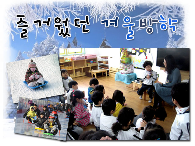 -무더웠던 여름에 심술이라도 부리는 듯 찬바람을 가득 안고 온 겨울! 어린이들의 몸과 마음의 휴식을 위해 2주간의 겨울방학을 보냈습니다. 방학이 끝나고 7살이 되어 만난 친구들은 몸도 마음도 한 뼘 더 자랐습니다. 오랜만에 만난 친구를 서로 안아도 주고, 즐거웠던 겨울방학에 대해서 재잘재잘 이야기도 나누어 보았지요.