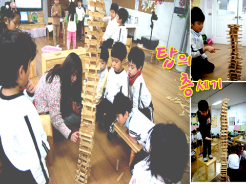 어린이들은 서로의 생각을 주고 받으며 탑쌓기에 몰입합니다. 30분이라는 시간동안 탑을 무너지고 다시 쌓여지고를 반복합니다. 어린이들은 짜증을 내기도 하고 환호성을 지르기도 합니다. 금방 포기한 팀도 있고 끝까지 해보자는 팀도 있습니다.