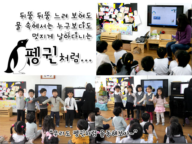 -하늘반 어린이들이 꼭 배워야겠다고 교사들에게 부탁했던 “펭귄”이라는 동요의 한 부분입니다.