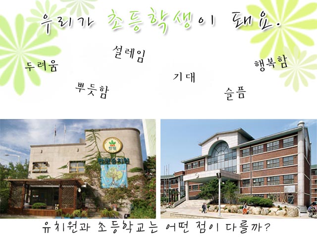 “우리 이제 곧 초등학생이 되네. 왠지 행복하고 뿌듯한 기분이들어.” “하지만 잎새반 친구들과 헤어져야 하는 것이 조금 슬퍼.” “잎새반과는 헤어지지만 학교에 가면 새로운 친구를 만날 수 있으니까 괜찮아.” “새로운 친구와 선생님을 만날 수 있어서 설레는 걸.” “그런데 초등학교에 가서 숙제를 못해 가면 어떡하지. 조금 두렵기도해.” “유치원 선생님보다 선생님도 더 무섭겠지?”