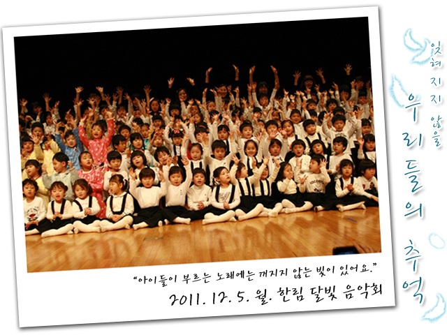 그래서 잘하고 못하고를 떠나 어린이들이 무대에 서는 것 그 자체로 커다란 감동이 되나 봅니다. 부모님들께서도 무대에서의 모습만을 기억하시기보다 무대에 올라서기 위해 어린이들이 얼마나 노력했는지, 또 얼마나 열심히 준비했는지를 기억해주세요. ^^