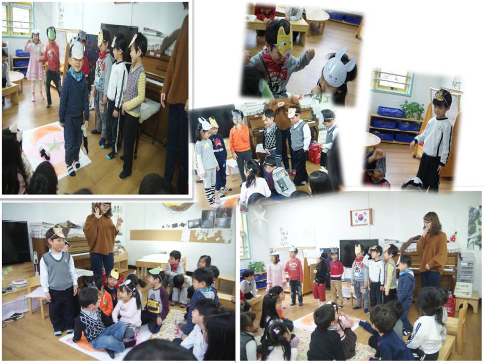 어린이들과 동극을 해보았습니다. 동극이 뭘까? 궁금해하는 아이들과 함께 이야기를 나누고 여러 가지 감정을 잘 표현할 수 있는 표정과 행동을 연습 해보기도 합니다.