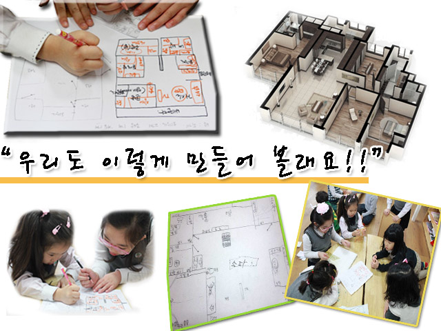 유아들은 방 구조를 그리며 인테리어까지 합니다.
