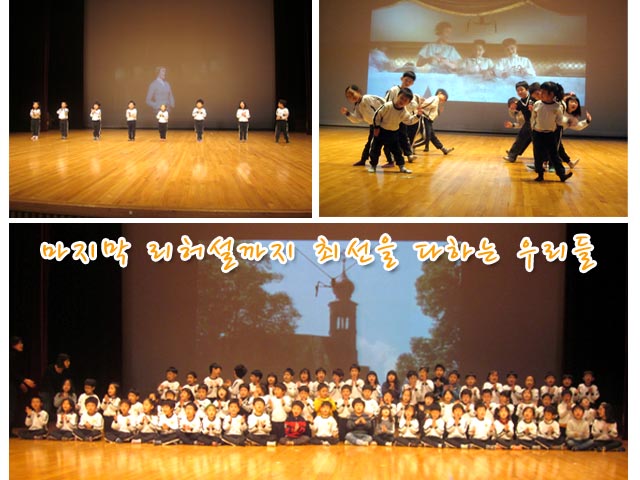 떨리는 마음을 가득안고 뮤지컬 공연이 시작됩니다. 노래를 부르고 율동을 하며, 자신이 맡은 역할의 대사를 합니다. 무대에 오르기 전 긴장하던 모습은 사라지고, 친구들과 함께 신나게 웃으며 무대를 즐기는 모습입니다. 큰 무대에서 떨지 않고 멋지게 해낸 우리 친구들의 모습이 너무나 대견해보입니다.<우리가 가장 빛났어요> “아빠, 엄마께서 칭찬을 많이 해주셔서 기분이 좋았어요.”, “나한테 너무 잘했다고 꽃다발을 줬어요. 정말 행복했어요.” “내가 세상에서 가장 멋지다고 하셨어요.” “엄마는 내가 무대 위에 있는 걸 보고 감동받아서 눈물이 났데요.” “우리가 다 잘했나봐요.”