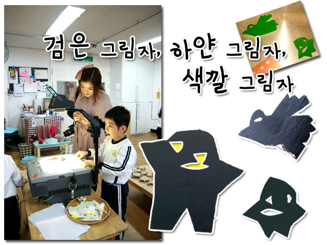 -빛과 그림자의 특징, OHP영역에서의 재미있는 놀이, 친구와 함께 만들어가는 재미있는 모양의 그림자들... 이 모든 것은 어린이들이 그림자 인형극을 계속시도하게 이끌었습니다.