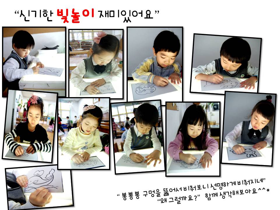 유아3: 맞아 맞아! 근데 라이트테이블에서 왜 이렇게 선명하게 보이는 걸까? 다른 곳에서는 선명하지가 않는데 말이야.