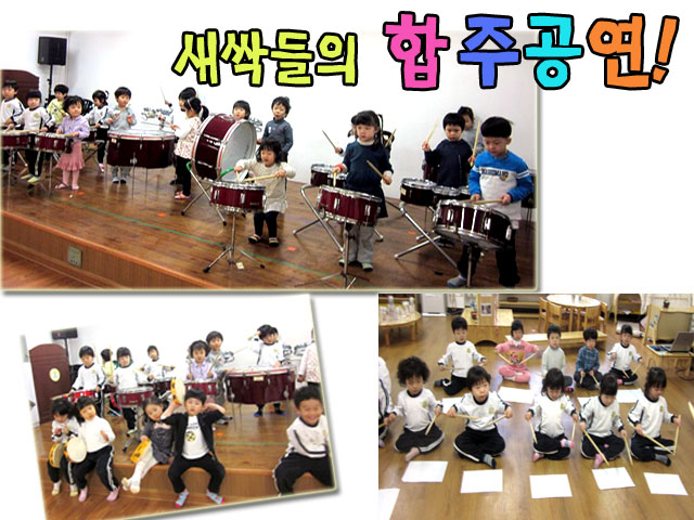 지금 아이들은 발표회를 준비하기 위해 <리듬합주>연습을 하고 있습니다. 먼저 리듬합주를 시작하기 전 우리가 사용할 악기를 탐색 해 봅니다. “나는 큰 북 연주 해 본 적 있어요.” “큰 북 소리는 우르르 쾅쾅!!” “쿵쿵” “천둥치는 거 같아요.” “작은 북은 또로로록” “아기 소리 같아” "어 이 악기는 이름이 뭐지?” “북 같아요. 우리가 국악시간에 치는 북!” “봉고? 이름이 너무 웃겨.” “우리가 이 악기 모두 쳐 볼 거예요? 쳐 보고 싶어요.” 다양한 종류의 악기를 탐색 해 보고 알아보면서 아이들 마음속에서는 악기를 직접 연주 해 보고 싶은 마음이 점점 커지기 시작합니다.