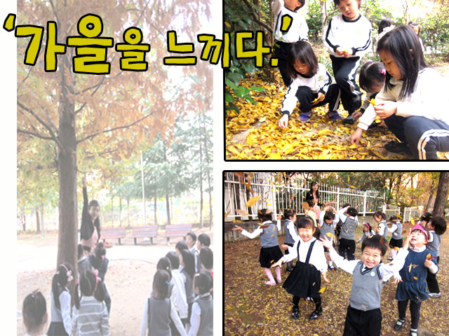 아이들은 나무 색의 변화를 통해 가을이 왔음을 눈으로 느낍니다.