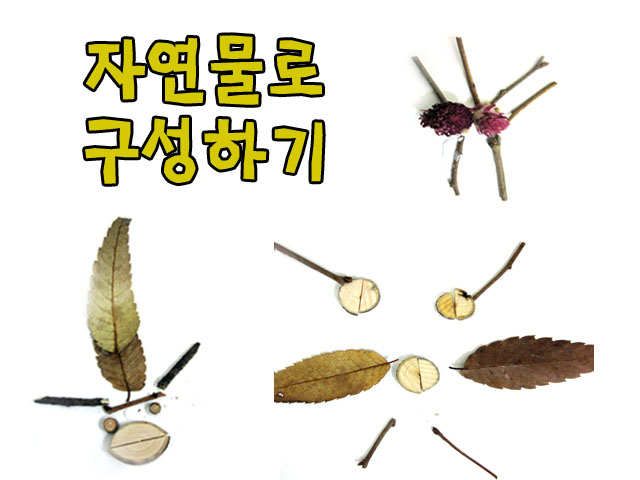 이번에는 떨어진 나뭇잎과 자연물을 사용하여 함께 글자 만들기와 모양 구성하기 활동을 해 봅니다.