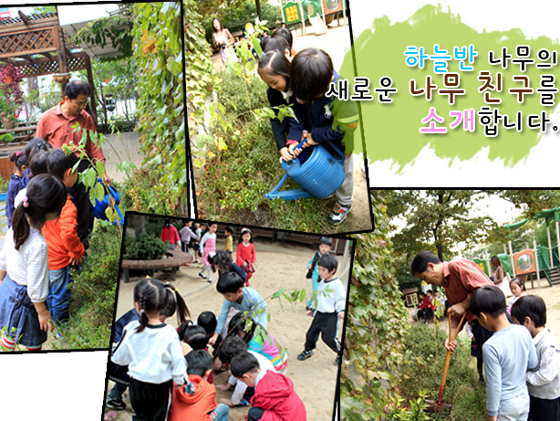 “안아주고... 사랑해줘야지.” “아껴 써야 해. 나무가 준 것을!” “씨앗을 심어서 나무 친구도 만들어 줘.” “맞아. 그러면 하늘반 나무한테도 친구가 생겨!” “그리고 애기를 보면 귀엽고 그래서 기분이 좋아져.”