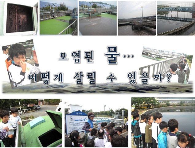 가정에서 수집한 다양한 물을 보며 함께 이야기를 나누어 봅니다. “으~ 냄새날 것 같아요! 더러워요.” “저 물이 바다로 그대로 흘러가면 바다에 사는 생물들도 다 병들고 죽을 거예요. 그럼 우리도 병들고 살 수 없어요!” “아빠가 그러시는데 우리가 쓴 물이 하수구로 가면 하수처리장에서 깨끗하게 만들어서 강이나 바다로 흘려 보낸데요!" “윽.... 그럼 우리가 버린 물이 다시 우리에게 오는 거네요?” 우리가 쓴 물이 어떤 과정을 거쳐 다시 우리가 쓸 수 있는 깨끗한 물로 변하게 되는 것인지 알아보기 위해 <신천하수처리장>을 방문하였습니다. 하수처리장을 직접 둘러보며 여러 처리 과정을 통해 물이 깨끗해 지는 모습을 직접 보았습니다.