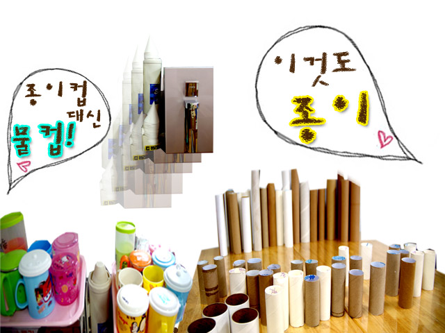 “이면지를 사용하면 지구가 행복해져요. 종이는 나무로 만드는 건데....나무는 지구에 있는 거니까요.”