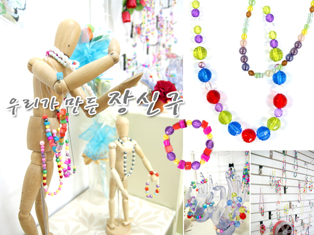남자 친구, 여자 친구할 것 없이 하늘반 친구들 모두가 한번쯤은 푹~빠져 놀이하게 만드는 매력적인 공간 구슬영역. 어린이들은 목걸이, 팔찌, 반지와 같은 여러 가지 장신구를 디자인하고 구슬을 끼웁니다.