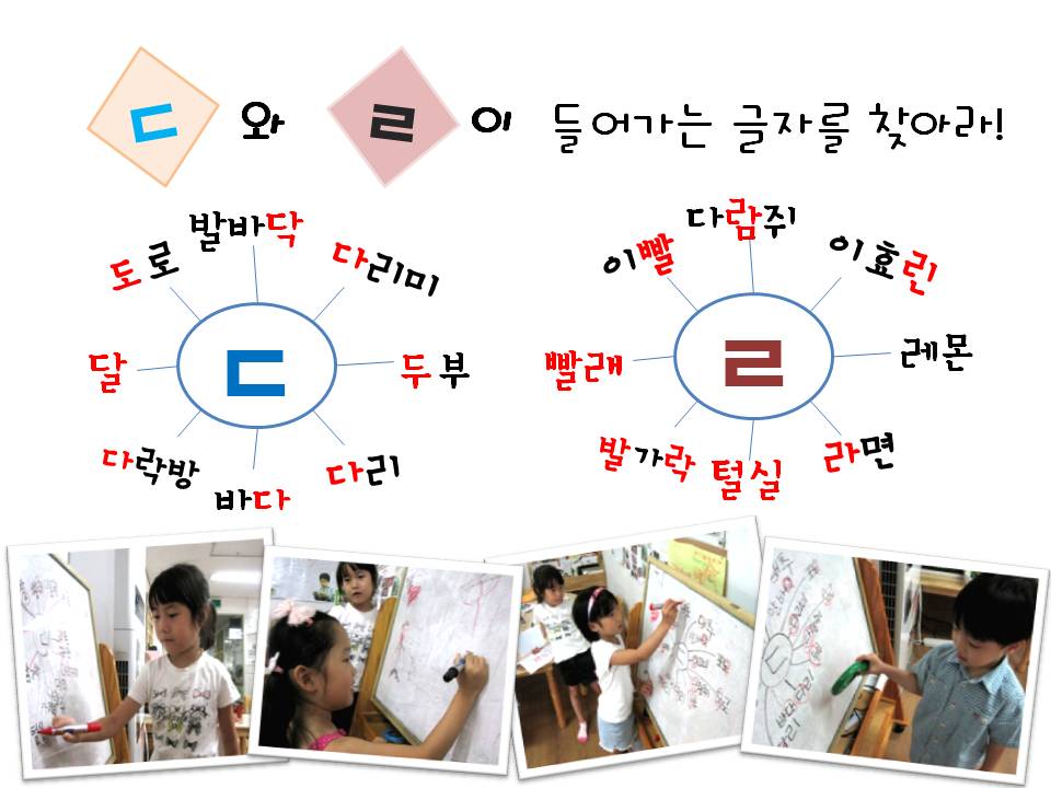 교사:<ㄷ,ㄹ> 들어가는 글자는 어떤 것이 있을까요?