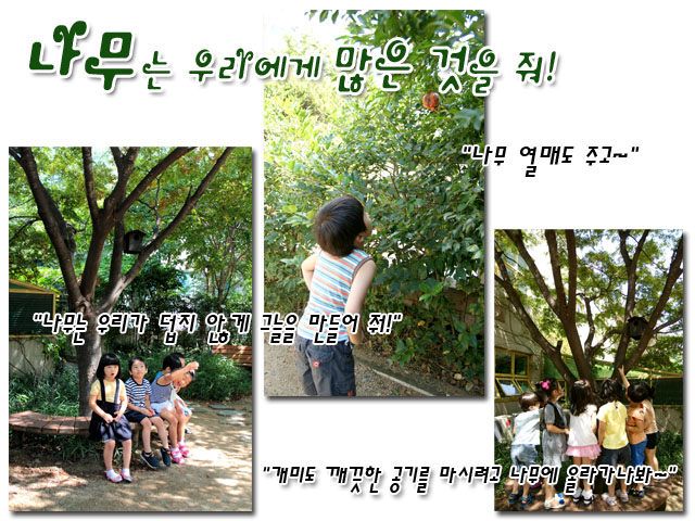“나무는 우리한테 책상도 만들어 주고, 종이, 피아노, 나무블록도 만들어줘요. 나무가 없으면 우리가 재미있게 놀 수가 없어요.”