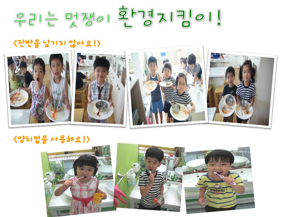 잔반 남기지 않기, 먹고 난 자리 깨끗이 정리하기, 양치컵 사용하기, 책과 자기 물건 소중히 다루기 등과 같은 실천 항목을 정해 에코 마일리지를 쌓아가는 중이랍니다. 가정에서도 잔반을 남기지 않거나, 양치컵 사용하기 등 교실에서 지켜야 할 약속도 실천하고 있는 어린이들의 모습을 보이지 않으신가요?