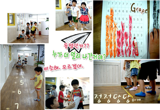 어린이들은 반복하여 비행기를 날리고, 또 다르게 접어 날리고, 변화된 자세로 날리면서 멀리 날아가는 비행기를 탐색합니다.