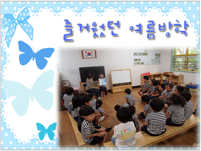 즐거웠던 여름방학이 끝나고 꽃잎반 친구들이 교실에 모였답니다. 방학을 보내고 온 아이들의 입가에는 미소가 한가득, 이야기 거리는 한보따리입니다.