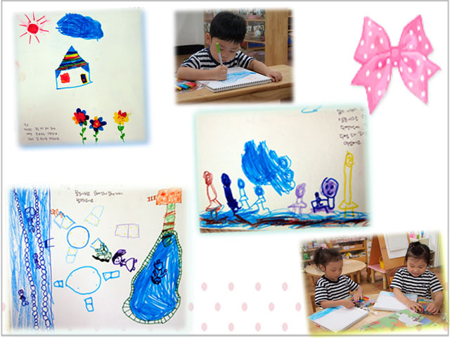 <♥행복한 2학기> 2주의 여름방학 동안 다양한 경험을 통해 아이들의 몸과 마음이 건강해진 것 같습니다. 2학기에는 신나는 캠프, 숲 체험, 시장놀이, 아버지 참여수업, 전시회, 발표회까지 정말 즐거운 일이 가득하답니다.^^ 더 많은 생각과 더 많은 이야기를 마음에 품고 설레는 마음으로 2학기를 시작해 봅니다. 꽃잎반 천사들아 사랑해.# 방학동안 이~만큼 환경을 보호했어요.