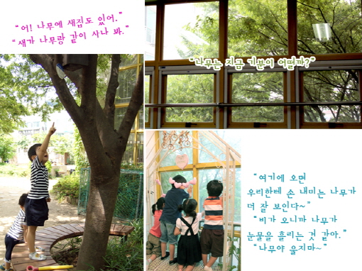 어린이들의 눈에 발견된 나무는, 그저 한 그루의 나무가 아니라 우리들과 같이 생각하고 감정을 가진 나무로 다시 태어나고 있는 것 같습니다.