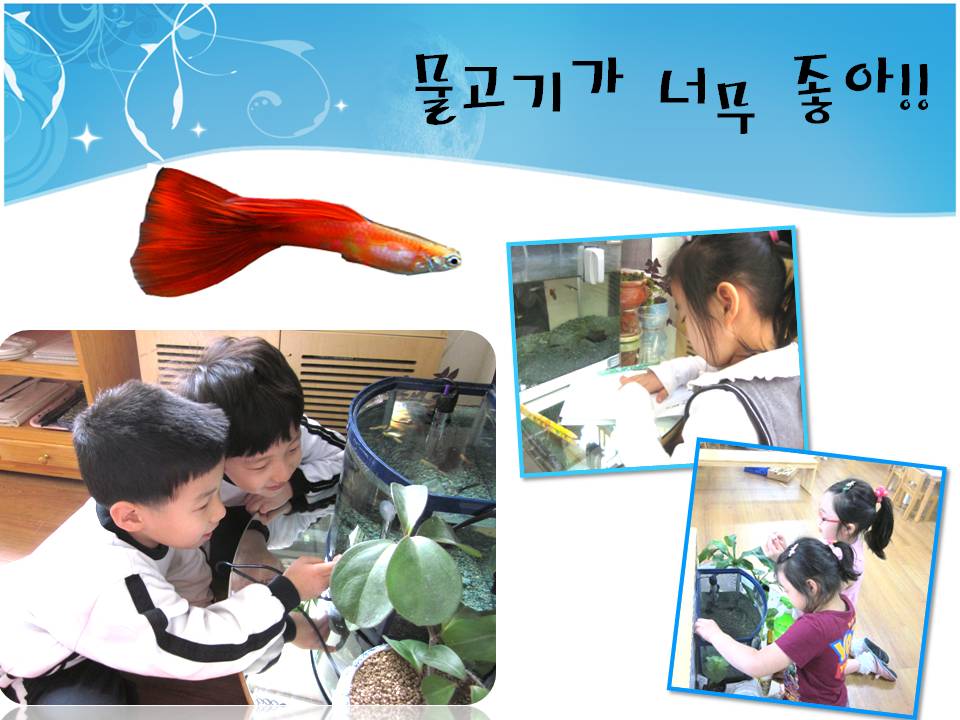 "우리 엄마 아빠가 우리를 잘 키우고 돌봐주는 것처럼 우리도 물고기를 돌보자!!"