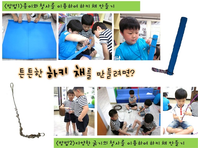 환경을 생각하는 잎새반 친구들의 예쁜 마음이 더 많은 사람들에게 전해지길 소망해 봅니다.<종이와 철사로 튼튼한 하키채 만들기>