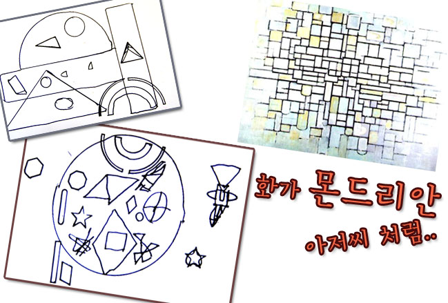 생각을 표현하는 기술의 부족 또는 상상력의 크기로 짐작할 수 있는 그 그림들은 어른들의 추상화와 닮아 있습니다.