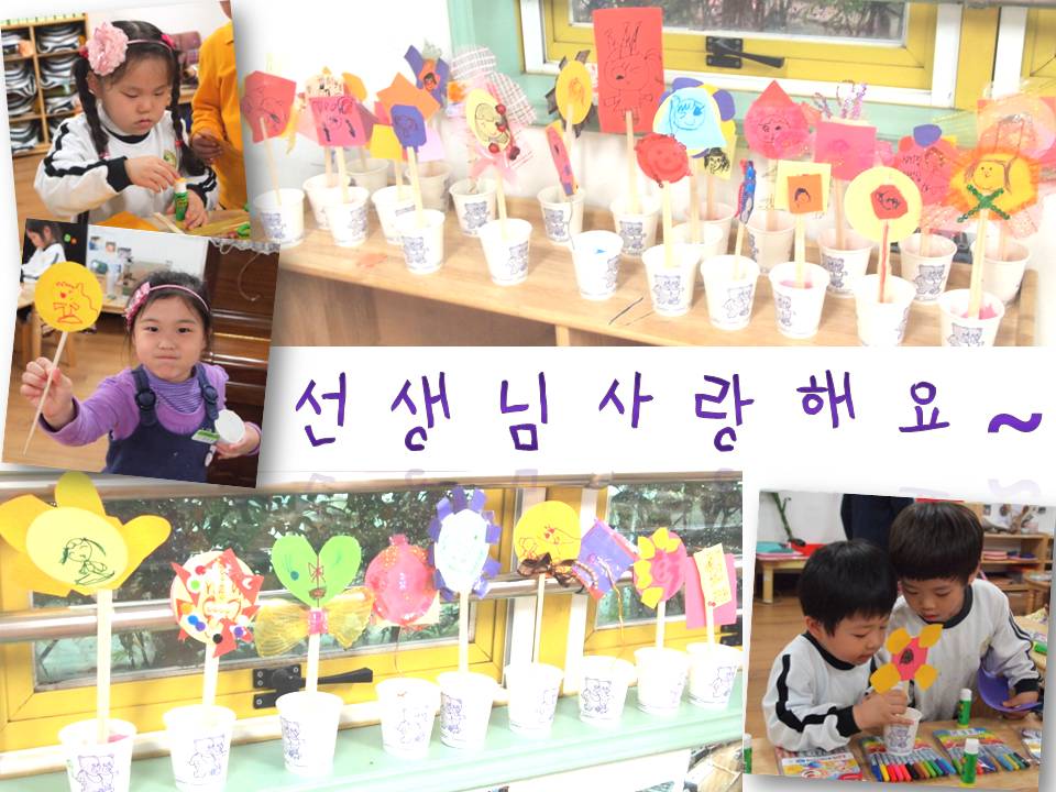 꽃잎반 어린이들은 선생님께 사랑하는 마음을 담아 ‘선생님 꽃’을 만들기로 했습니다.