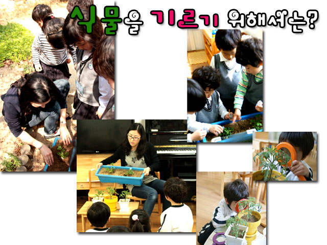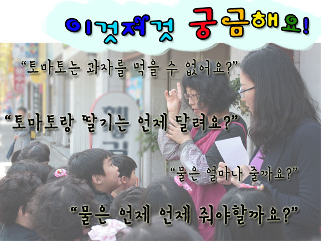 하늘반 관찰 영역에는 빨간 물고기 2마리, 또 여러 가지 식물이 있습니다. 그런데 물고기에는 관심을 보이는 어린이들이 식물에게는 큰 관심을 보이지 않습니다. 그러면서 교실 밖 창문에 보이는 나무에는 또 큰 관심을 보이는 것을 보니 식물에 대해 관심이 없는 것은 아닌 것 같습니다. 가만히 생각 해 보니 봄이 되면서 나무는 변하는데 교실의 식물은 크게 변화가 없습니다. 그래서 변화를 느낄 수 있는 것 중 어떤 식물을 기르면 좋을까 이야기 해 보았습니다. “난 꽃이 피는 게 좋아요. 꽃은 예쁘잖아요.” “나는 상추처럼 먹을 수 있는 거~!” “우리 집에 고추 심은 것도 있는데~” “고추는 너무 매워서 우리 못 먹잖아!” “달콤한 딸기는 어때? 나는 딸기 좋아하는데~!”“딸기는 어떻게 크지?? 우리가 딸기 키우면 좋겠다!”“나는 토마토도 키우고 싶어!” 이렇게 해서 하늘반에 새로 오게 된 식구는 방울토마토와 딸기 모종입니다. 모종은 꽃집을 운영하시는 하늘반 학부모님께서 지원해 주셨답니다. 방울토마토엔 벌써 노란 꽃이 폈고 딸기도 이에 질세라 하얀 꽃을 피웠어요. 그런데 모종을 기르면서 우리에겐 여러 가지 고민거리와 궁금한 것이 생겼습니다. 도대체 물을 얼마나 줘야 할지 토마토와 딸기는 언제 나오는지 궁금한 것이 한두 가지가 아니었지요. “어떻게 하면 궁금한 것들을 알 수 있을까??” “토마토를 키우는 전문가를 찾아 가는 건 어때요~?” 그래서 우리는 궁금한 것들을 가지고 어린이들이 말하는 전문가를 찾아가 궁금증을 해소할 수 있었답니다. 하늘반은 과연 토마토와 딸기를 볼 수 있을까요?
