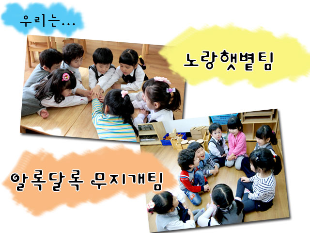 하늘반의 팀은 우유를 먹거나 손을 씻거나 요리를 하거나 함께 토론하는 등등.. 유치원의 일상 안에서 틈틈이 함께하게 된답니다. 이렇게 함께하는 그 안에서 자신의 의견을 내세우기도하고 친구들의 의견을 수용하기도 하며, 서로 도와주기도 하고, 내가 어려운 일이 있을 때 도움을 받기도 할 것입니다. 그러면서 어린이들이 한 사회의 구성원으로서 익혀야 할 다양한 사회적 기술들을 스스로 알아가기를 바라는 마음입니다. 친구들과 함께한다는 마음에서 좀 더 즐거운 생활이 가능하지 않을까요? 앞으로 하늘반 4팀의 반짝거리는 활약이 기대되어집니다.