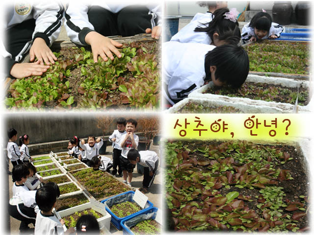 앞으로 아이들이 상추에게 많은 관심을 보이며 사랑으로 가꾸어 나가기를 기대해 봅니다.<물고기>