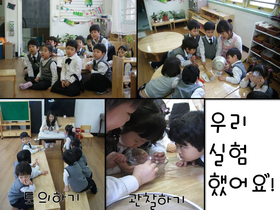 햇살반 친구들과 함께 왜 매매 씹어야 할지에 대해 알아보는 시간을 가졌어요. 친구들이 매매씹기에 대해 쉽게 이해하기 위해 “가루 각설탕과 각설탕 덩어리 중 어느 것이 더 빨리 녹을까요?”라는 간단한 실험을 해보았어요. 가루 각설탕이 빨리 녹는다는 것을 알 수 있겠죠? 마찬가지로 우리 몸속에 음식이 흡수되려면 음식을 꼭꼭 씹어야 빨리 흡수가 될 수 있어요.