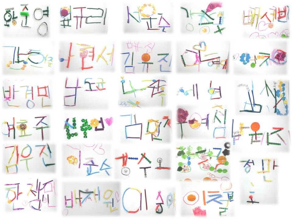 각각의 매체를 알아가고 그 특성을 이용하여 만든 내 이름. 완성된 작품을 보는 어린이들의 표정에서는 뿌듯함과 만족감, 그리고 자신감을 느낄 수 있었습니다.