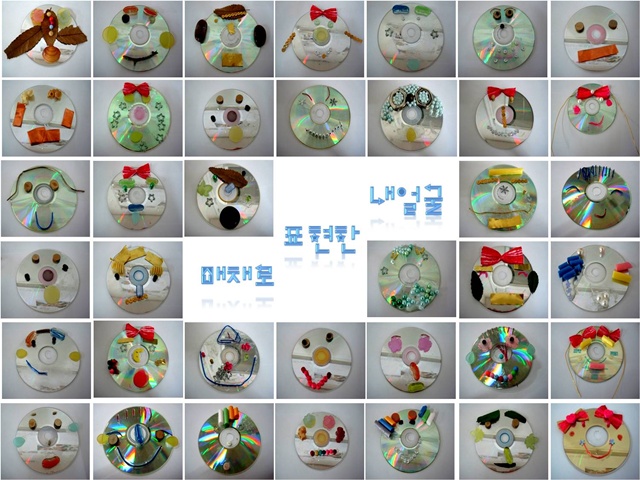 “난 납작한 나무와 콩으로 눈을 만들꺼야.”, “난 반달모양 나뭇잎으로 눈썹을 만들꺼야.”, “코는 세모모양이고 길죽하니까 스팽글을 연결하면 좋겠어.”, “나는 볼이 통통하니까 동그란 매체를 볼에 붙여야지.”