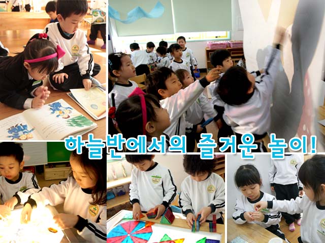 이제 하늘반이라는 공간 안에서, 어린이들은 그들이 가진 무한한 잠재력을 발휘하고, 가능하게 하여 자신만의 독특한 아이디어들과 나름의 논리를 들어내고 또래와 함께 어울려 가게 되지 않을까 기대 해 봅니다.