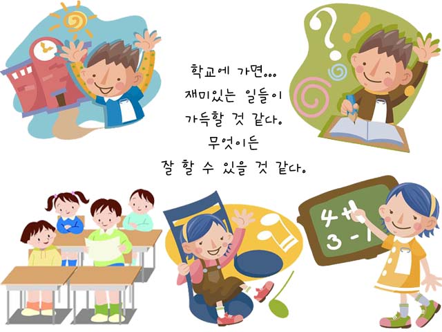 이렇게 설레임과 기대감을 가지고 초등학교를 다녀온 친구들. 초등학교에서 어떤 일들이 있었을까요? 그리고 초등학교를 다녀온 후 기분은 어땠을까요?