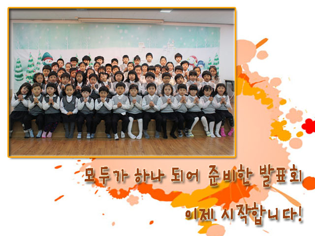 발표회를 준비하는 과정이 때론 조금 힘이 들기도 했지만 ‘그래 해보자!, 우리는 할 수 있어!, 좋았어 이제 조금만 더하자’ 라는 도전의 마음으로 서로가 서로를 격려하며, 아이들은 자신이 맡은 역할이 가장 크고 중요하다는 것을 알았습니다.