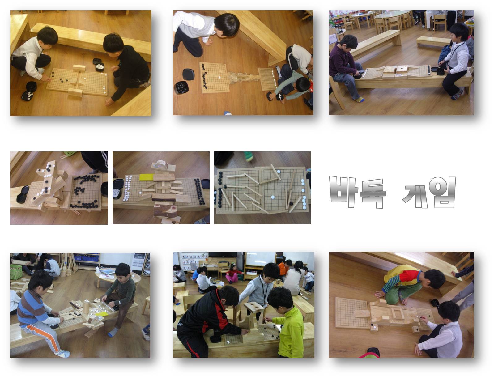 [바둑 게임] 바둑게임은 검은색 바둑알과 흰 색 바둑알을 양쪽에 세워두고, 상대방 바둑알을 쳐서 판 밑으로 떨어뜨리는 게임이랍니다. 처음에는 바둑판 2개를 나란히 놓고 바둑알을 튕겼으나 지금은 장애물 블록 사이로 통과하기, 복잡한 길 사이로 지나가기 등 더 어려운 요소들을 추가해 나가며 더 재미있는 바둑게임을 만들어 가고 있는 중이랍니다.